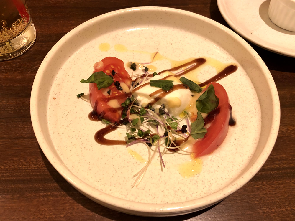 前菜は、ブッラータチーズとフルーツトマトのカプレーゼ 。