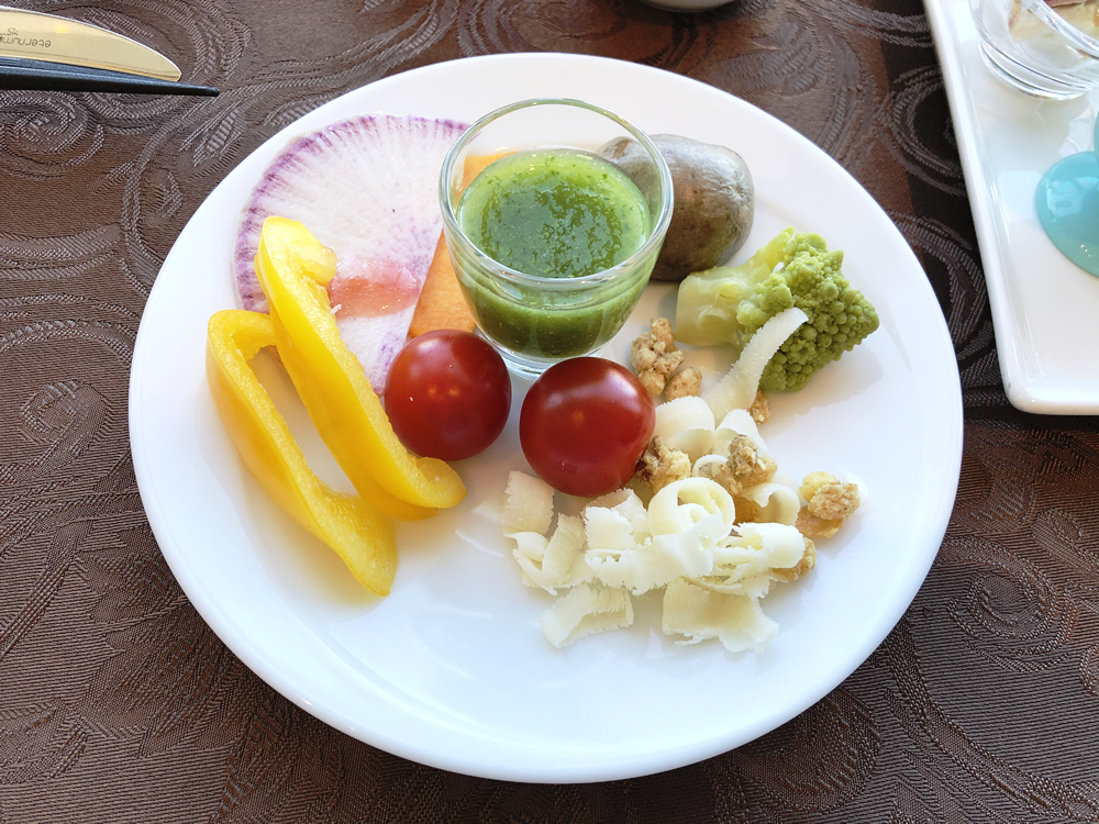 お野菜は、いろんな珍しい生野菜のカットと、根菜が温野菜となって蒸されておりました。