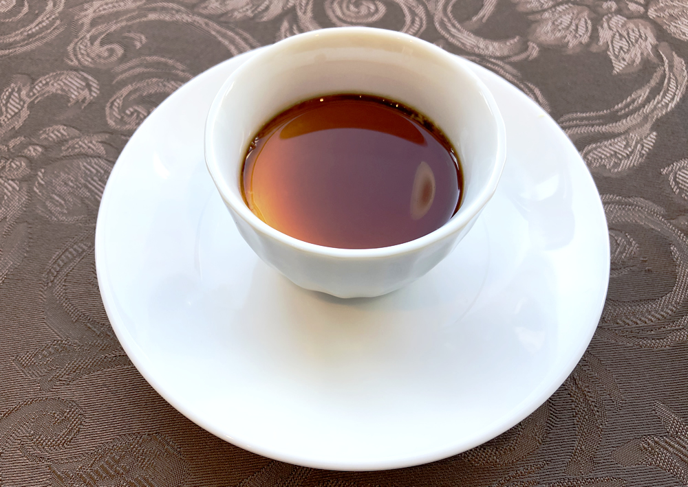水色の器に入っているのは、ゆり根の冷製スープだったかな?