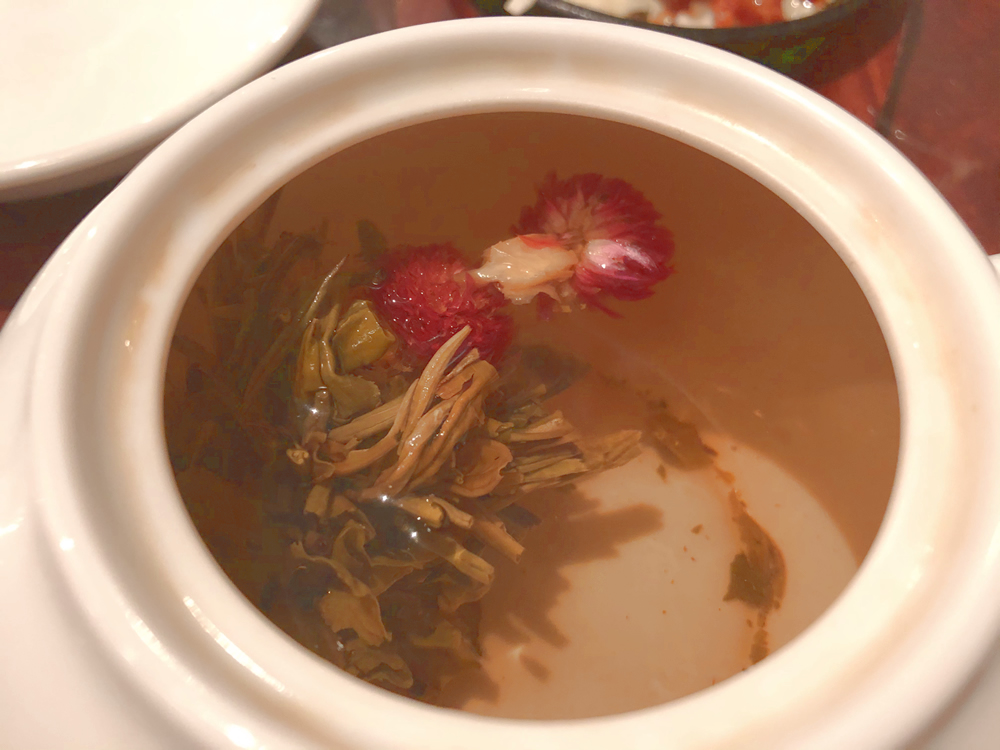 ビジネス街で、食前に可愛い花茶が飲めるなんて!感激!!