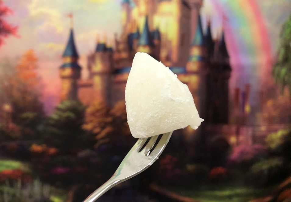 白色の部分だけ少し味見してみると、ほんのりレモンが香ります。本格的なレアチーズケーキです! 布に巻かれてるタイプの、スプーンですくって食べるレアチーズケーキに近いかな。デパートの催事とかで人気ですよね!あのザルに入ってるみたいな布にくるまってるアレです♪